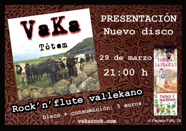 Presentación Tótem, primer disco de VaKa Publicado el 22 marzo, 2019 por anuskavk Presentación-escucha y brindis en la Taberna La Frasca (c/ Payaso Fofó, 24), 29 de marzo, 2019, 21:00 h. Me gusta Cargando... Relacionado