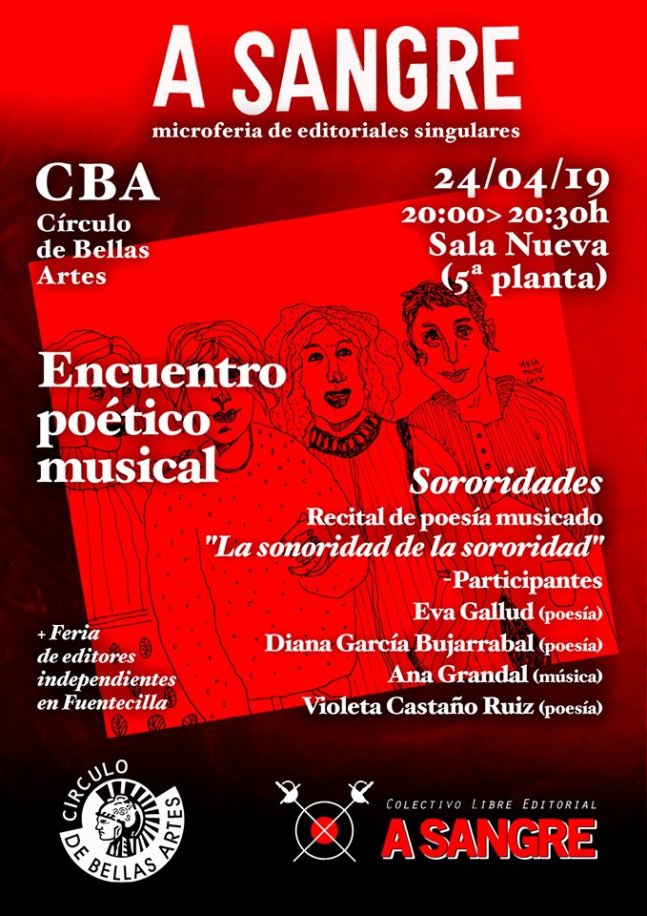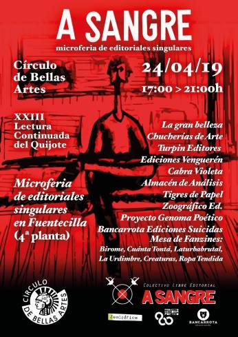 A Sangre, Microferia de editoriales singulares Publicado el 22 abril, 20196 junio, 2019 por anuskavk Música de flauta + poesía por mujeres en la feria de editoriales singulares A Sangre. Me gusta Cargando... Relacionado