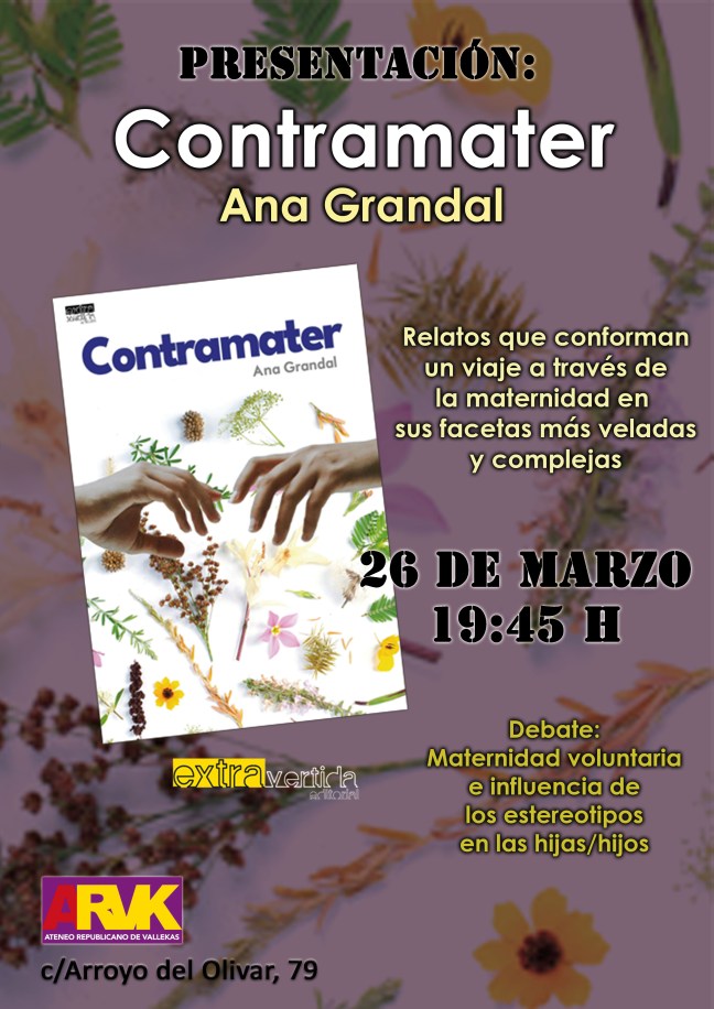 Presentación Contramater – Marzo ’25, Dinamita Feminista Publicado el 25 marzo, 2025 por anuskavk Dentro de la programacion de marzo Dinamita Feminista, organizada por el grupo de mujeres Rosario Dinamiteras (Ateneo Republicano de Vallekas), la autora, Ana Grandal, presenta su libro Contramater. Comparte esto: Haz clic para compartir en X (Se abre en una ventana nueva) X Haz clic para compartir en Facebook (Se abre en una ventana nueva) Facebook Me gusta Cargando... Relacionado