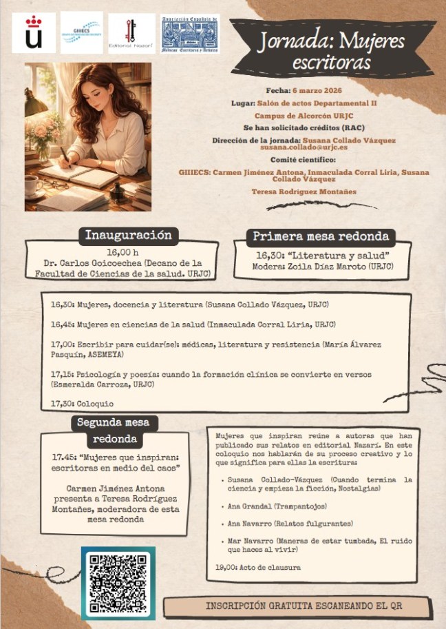 Jornada Mujeres Escritoras Publicado el 28 febrero, 2026 por anuskavk Editorial Nazarí y la Universidad Rey Juan Carlos organizan este encuentro de escritoras. Comparte esto: Compartir en X (Se abre en una ventana nueva) X Comparte en Facebook (Se abre en una ventana nueva) Facebook Me gusta Cargando... Relacionado