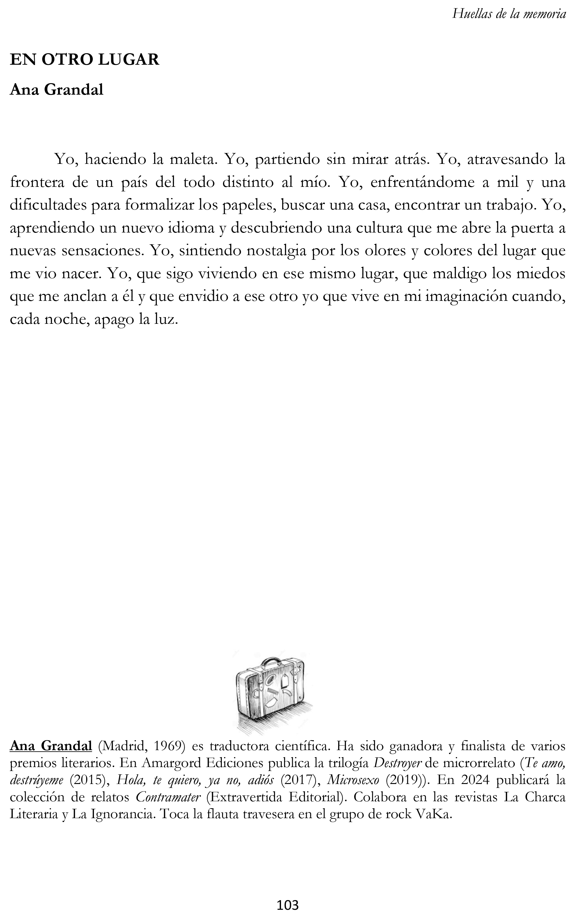 Antología de minificciones sobre migraciones y desplazamientos humanos, editada por Brevilla, revista digital de minificción (editora: Lilian Elphick Latorre) (2024) En otro lugar |