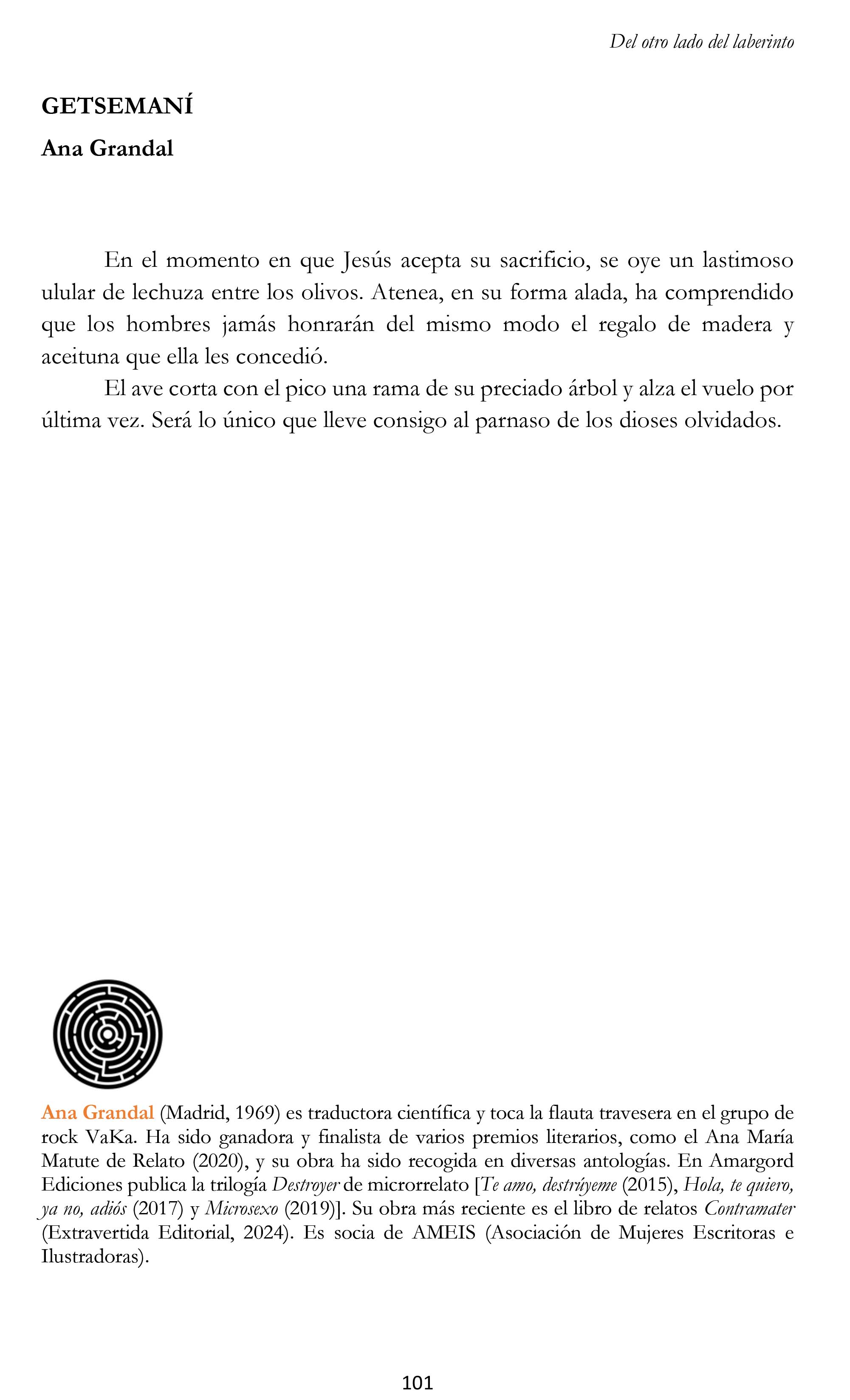 Antología de minificciones sobre mitología grecorromana, editada por Brevilla, revista digital de minificción (editora: Lilian Elphick Latorre) (2025) Getsemaní |